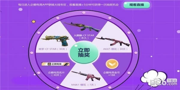 3、用活动同一QQ登录企鹅电竞APP,每日观看穿越火线专区直播,且时长达5分钟可获得一次抽奖机会;