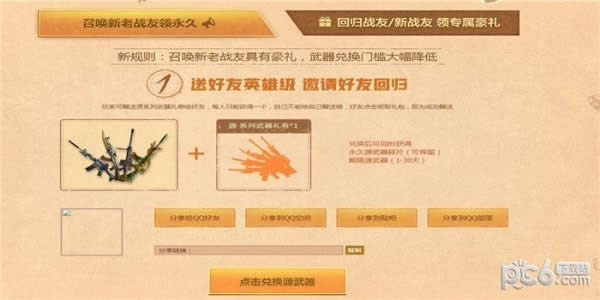 1.玩家可赠送源系列武器礼券给好友,每人只能获得一个,自己不能给自己赠送哦,好友点击领取礼包,即为成功赠送