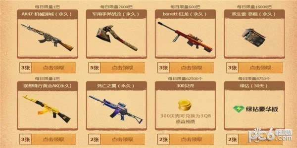 点击兑换2张点击领取