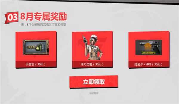 8月专属奖励注:8月会员签约完成后可立即领取