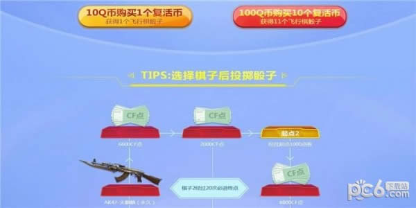 1.10Q币购买复活币1个可获得一个骰子,100Q币购买复活币10个可获得11个骰子;