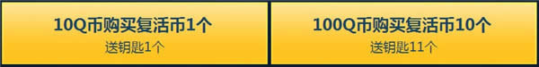 ★ 10Q币购买复活币1个可获得1个钥匙,100Q币购买复活币10个可获得11个钥匙;