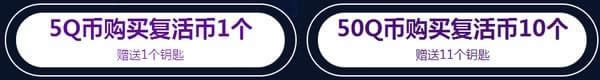 1 5Q币购买复活币1个可获得钥匙1个,50Q币购买复活币10个可获得钥匙11个;