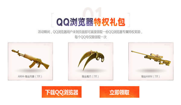 1.活动期间,QQ浏览器用户来到页面即可直接领取一份QQ浏览器专属特权奖励,每个QQ号仅限领取一次