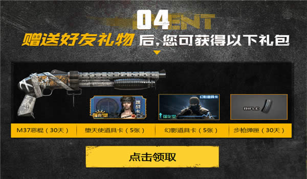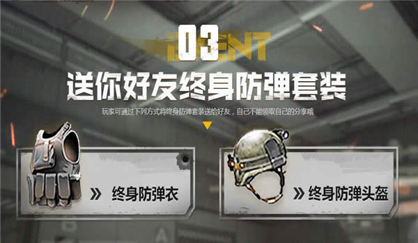 2.玩家可通过下列方式将终身防弹套装送给好友,自己不能领取自己的分享哦