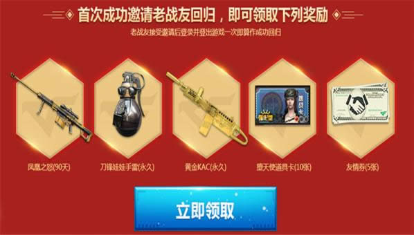 1.首次成功邀请老战友回归,即可领取以下奖励。(老战友接受邀请后回归游戏并登出一次即算成功回归游戏)