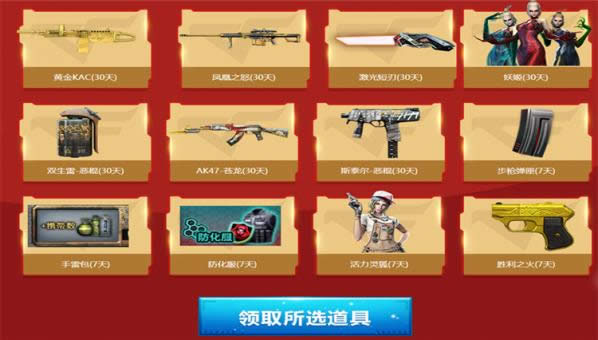 回归玩家每日任意游戏一局,即可从下列道具中选择3件领取,每件道具仅限领取一次。