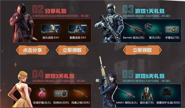 活动期间(4月3日-4月8日),每日加入任意一局游戏,即可抽取小手枪1次,单个QQ限抽取2次。