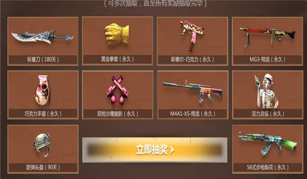 4.活动期间,每日加入任意一局游戏,累计2天,即可抽取宝贝1件。(可多次抽取,直至所有奖励抽取完毕)