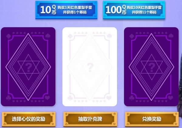 1.用户花费Q币购买指定道具,并获赠筹码。