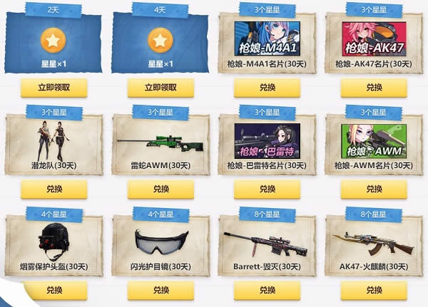 活动期间:用户积累游戏2天和4天分别可以免费领取一个数量的星星,消耗星星可以兑换游戏礼包哦。