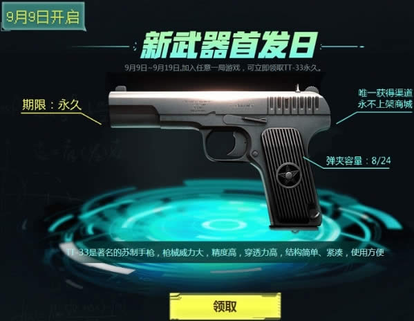 9月9日~9月19日,加入任意一局游戏,可立即领取TT-33永久。