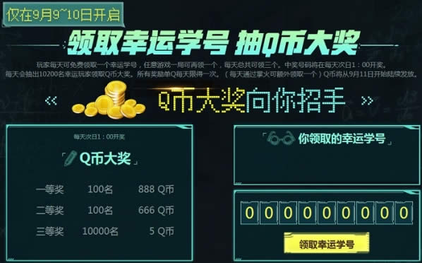 玩家每天可免费领取一个幸运学号,任意游戏一局可再领一个,每天总共可领三个。中奖号码将在每天次日1:00开奖。