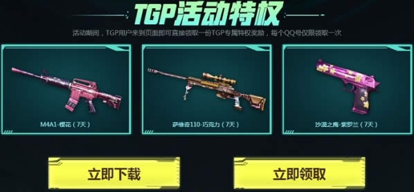 活动期间,TGP用户来到页面即可直接领取一份TGP专属特权奖励,每个QQ号仅限领取一次
