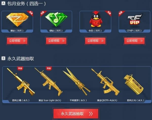 新兵在11月13日之前达到10级(下士2),即可参与领取包月业务、抽取永久武器(每个QQ账号仅限1次)。