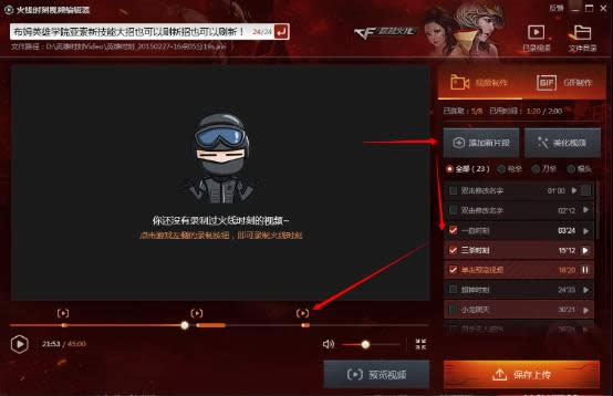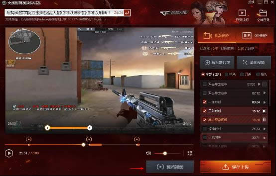 1.与旧版的编辑器相比,增加选择精彩片段功能,您可以根据自己的喜好,选择枪杀、刀杀、爆头等精彩片段