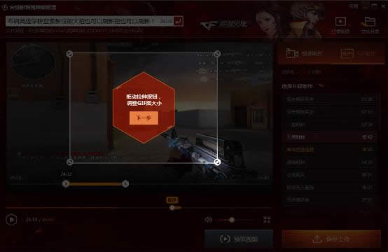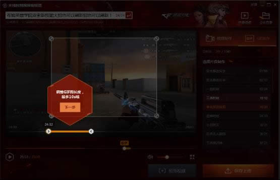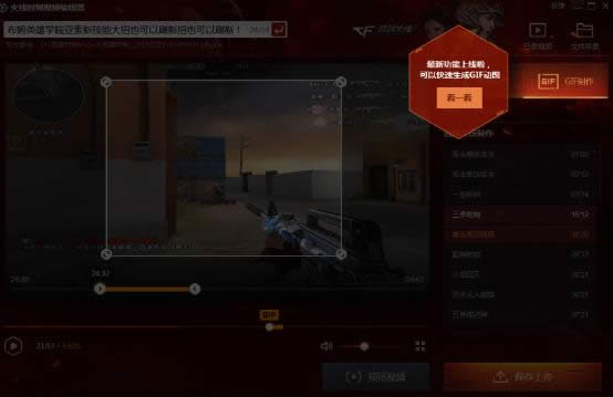 在CF游戏中,可以通过快捷键Alt+1和鼠标点击屏幕左侧录制按钮,进行录制和暂停的切换,手动选择要录制的对战局。退出游戏后后,可选择为您的自动截取的游戏精彩镜头进行编辑。