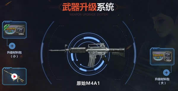 本次免费武器升级系统添加了新成员M4A1,随着等级的提升,武器外观越来越华丽,属性包括装备消音器、EP加成、装弹数等也会越来越强,直至升级为终极形态“M4A1-皇家雄鹰”!同时,免费武器升级系统新增“武器体验版领取”功能!