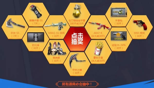 玩家每抽抽奖一次,抽到的道具即从奖池中消失。所有道具皆可能抽中!玩家每天均能免费抽奖一次,任意加入游戏一局,再获得一次抽奖机会。通过掌火可额外抽奖一次,最多可抽十次