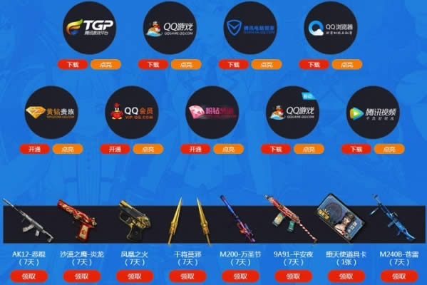 活动期间,用户每点亮一个特权图标,即可领取1件装备,每件装备最多领取1次。