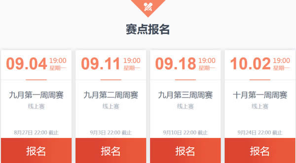 注明:每周周赛冠亚军直接晋级线下月赛,三轮周赛结束后,三周周赛的季军和殿军会进行一轮复活赛,决出最后两个月赛名额。