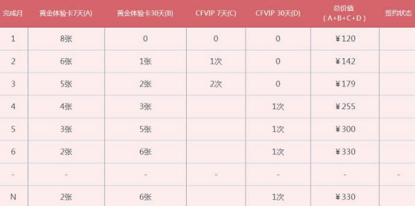 3.不可中断,如次月未能续约,则前期积累清零;(签约后,必须保证合约开启日后的自然月,每月有1次游戏行为,如果