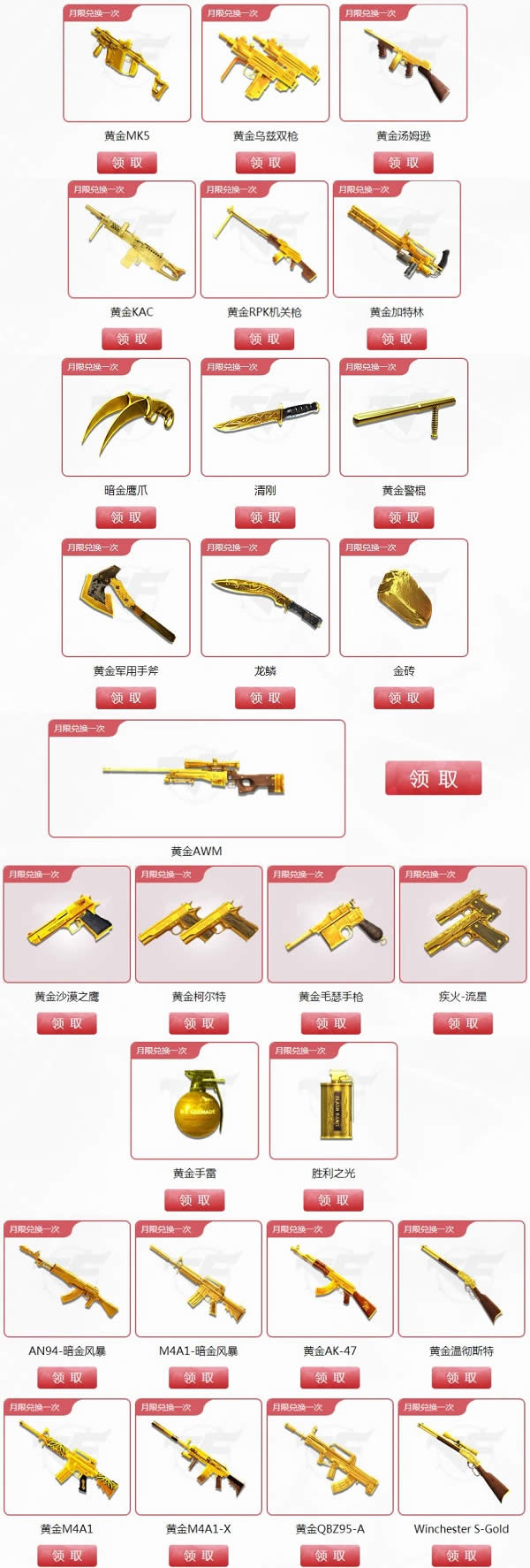 1.凭借体验卡即可进入武器兑换专区兑换相应奖励噢!