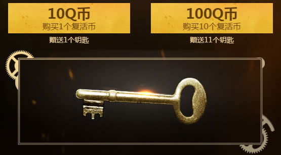 1.10Q币购买复活币1个可获得一个钥匙,100Q币购买复活币10个可获得11个钥匙;