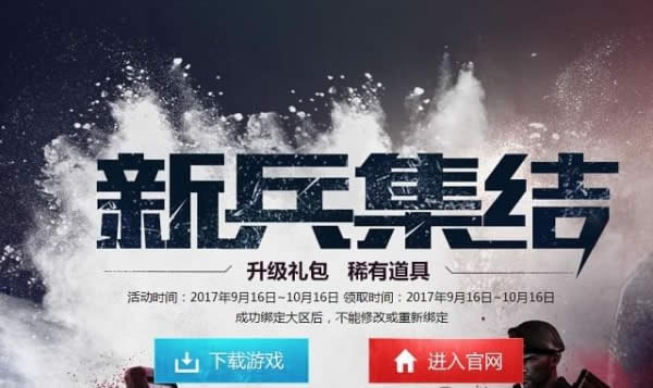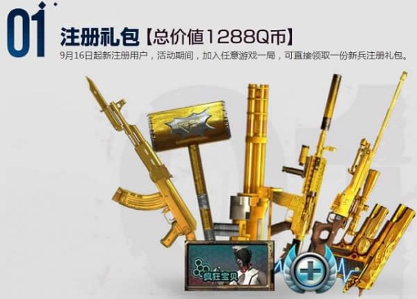 9月16日起新注册用户,活动期间,加入任意游戏一局,可直接领取一份新兵注册礼包。