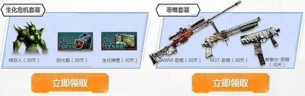 任意游戏一局累计2天,玩家可任意领取一个套装,领完为止。每个套装单Q限领一次