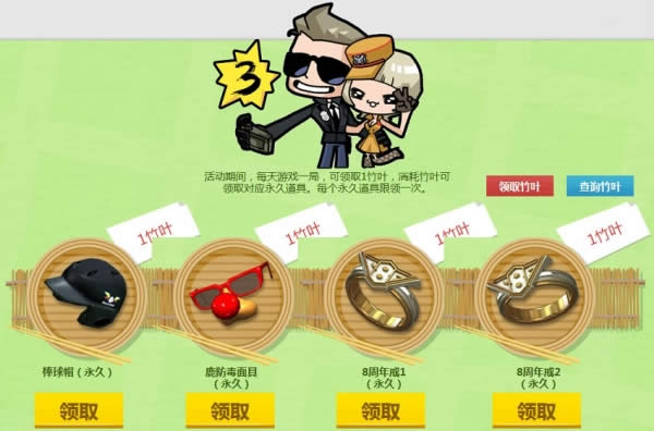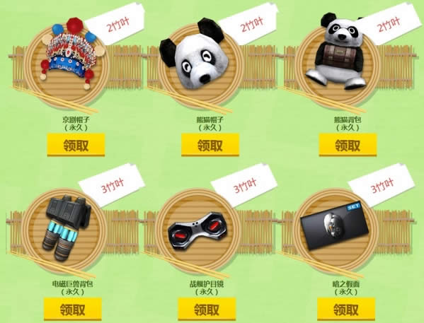 活动期间,每天游戏一局,可领取1竹叶,消耗竹叶可