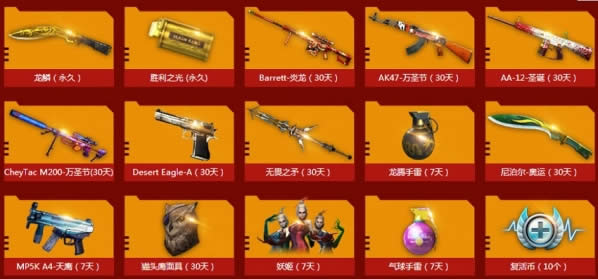 花费指定金币数量,可打开相应的福袋,随机获取福袋中的道具,一次最高可获得福袋中的【全部15个道具!】