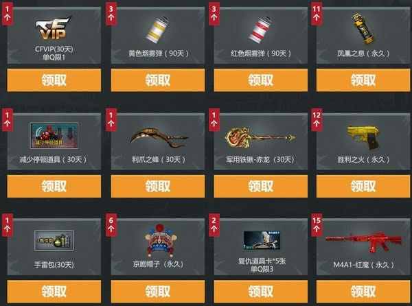 活动期间:10月成功开通的用户的CFer同时10月再次开通即可领取兑换券*2,消耗对应数量的星星即可在下方兑换相应的道具哦,每份礼包单Q限2次,游戏奖励请进入仓库查看!