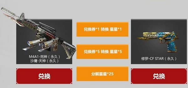 用户可以根据自己的喜好将兑换券折换成同等数量的星星,星星不可折换兑换券;活动期间:消耗一颗星星即可再免费抽奖一次,抽奖所获得的道具直接发放到游戏仓库内,包月特权直接添加到您的QQ账户中。