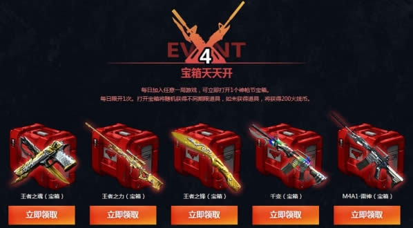 每日加入任意一局游戏,可立即打开1个神枪节宝箱。
