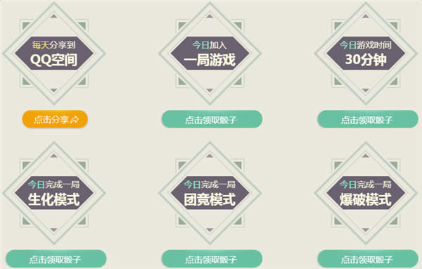 活动期间,玩家可以每天完成任务,领取扔骰子的机会。(每项任务每天仅能完成一次)