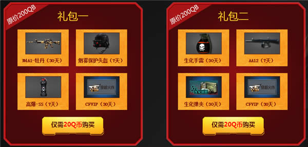 【活动规则】:单Q可以同时购买礼包一和礼包二,但每种礼包单Q仅限购买一次。