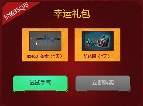 3、幸运礼包的购买价格由用户抽取获得,点击“试试手气”按钮,即可得知购买礼包的对应折扣价格。最幸运的用户,可以白拿礼包噢!单Q限购一次。幸运礼包不定期更换,届时您将可以再次“试试手气”领取一次。请随时关注本页面。