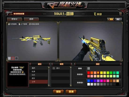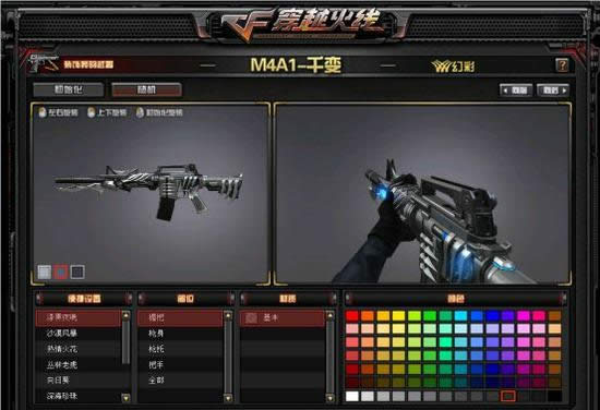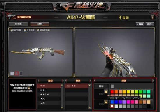 也就是说,如果你想给一种武器的几个部位变色需要花费至少3000CF点,最多也就花6000CF点,这个价位还是不高的。