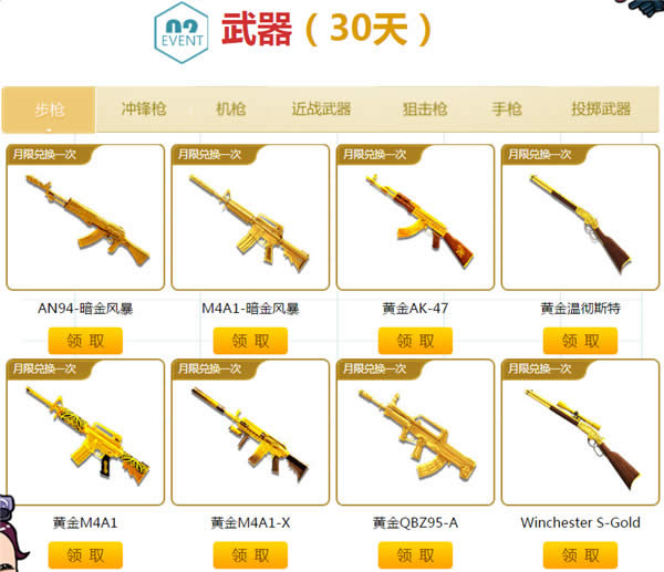 1、凭借体验卡即可进入武器兑换专区兑换相应奖励噢!