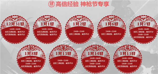 1月3日起,每日加入任意一局游戏,可立即打开1个神枪节宝箱。每日限开1次。打开宝箱将随机