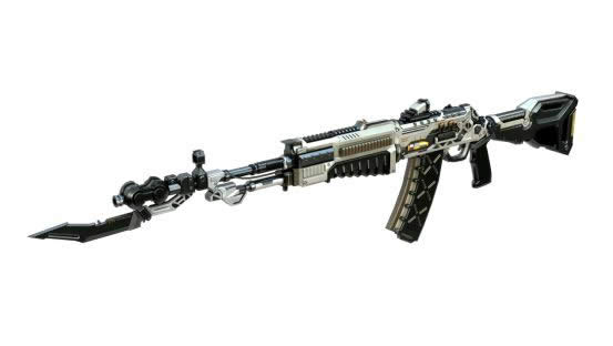 描述:传奇武器工匠精心制作的AN94。作为保卫者最尖端的武器之一,使用了高强度的钛合金航天材料打造。外观和颜色也借鉴了太空飞船的设计。