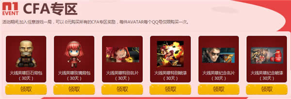 活动期间,加入任意游戏一局,可以 0元购买所有的CFA专区奖励,每件AVATAR每个QQ号仅限购买一次。