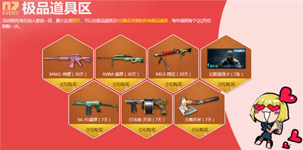 活动期间,每日加入游戏一局,累计达到四天,可以在极品道具区0元购买本期的所有极品道具,每件道具每个QQ号仅