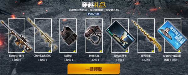 玩家绑定大区后,即立即领取一份穿越礼包