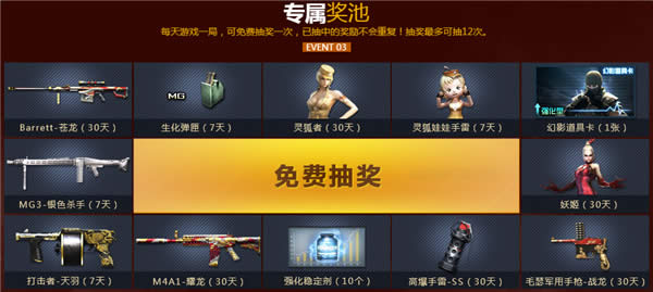 每天游戏一局,可免费抽奖一次,已抽中的奖励不会重复!抽奖最多可抽12次。