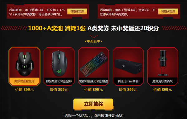 1000+ A奖池消耗1张 A类奖券 未中奖返还20积分