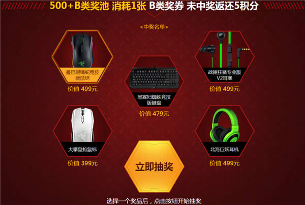 500+B类奖池 消耗1张 B类奖券 未中奖返还5积分