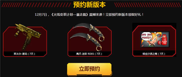 12月7日,《火线变革计划—暴走篇》震撼来袭!立即预约新版本领取好礼!