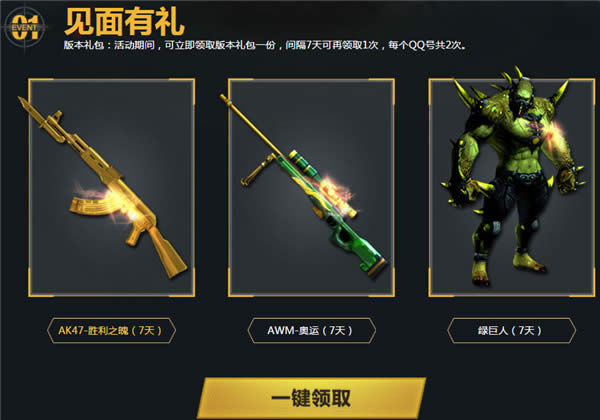版本礼包:活动期间,可立即领取版本礼包一份,间隔7天可再领取1次,每个QQ号共2次。